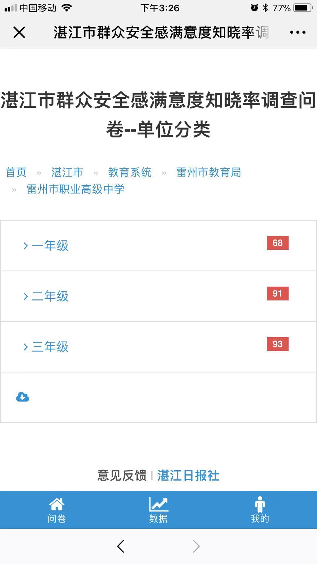 截止于2018年10月24日,我校圆满完成关于“扫除黑恶罪犯,弘扬社会正气”的群众安全感问卷调查!